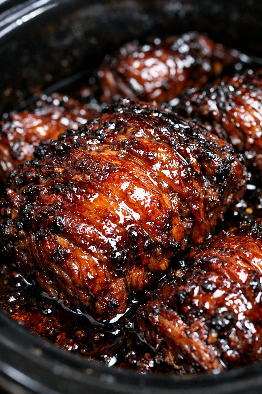 Once it reaches that deeply caramelized, succulent amber surface—glistening with its own dark, syrupy glaze—turn off the heat. Let it sit, covered, for 20 to 30 minutes to thicken slightly and cool just enough to serve without burning tongues.