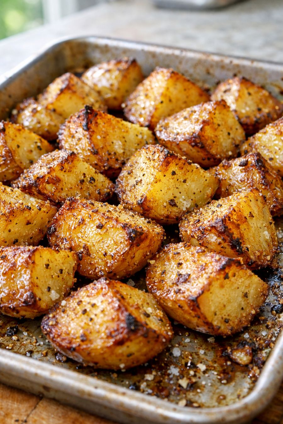Roast the potatoes for 20–25 minutes, stirring or shaking the pan once halfway through, until the potatoes are browned in spots, the seasoning looks dark and toasty, and the edges are slightly crisp.