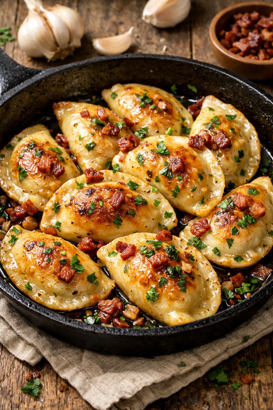 Serve these stovetop pierogies straight from the skillet with a crisp green salad or steamed green beans to balance the richness. A spoonful of sour cream or Greek yogurt on the side plays up their Eastern European roots, while a sprinkle of fresh herbs (if you have them) adds brightness. They pair nicely with roasted kielbasa, grilled sausages, or a simple pan-seared chicken breast for extra protein. For a cozy weeknight dinner, I like to add a side of braised cabbage or quick sautéed onions to round things out.