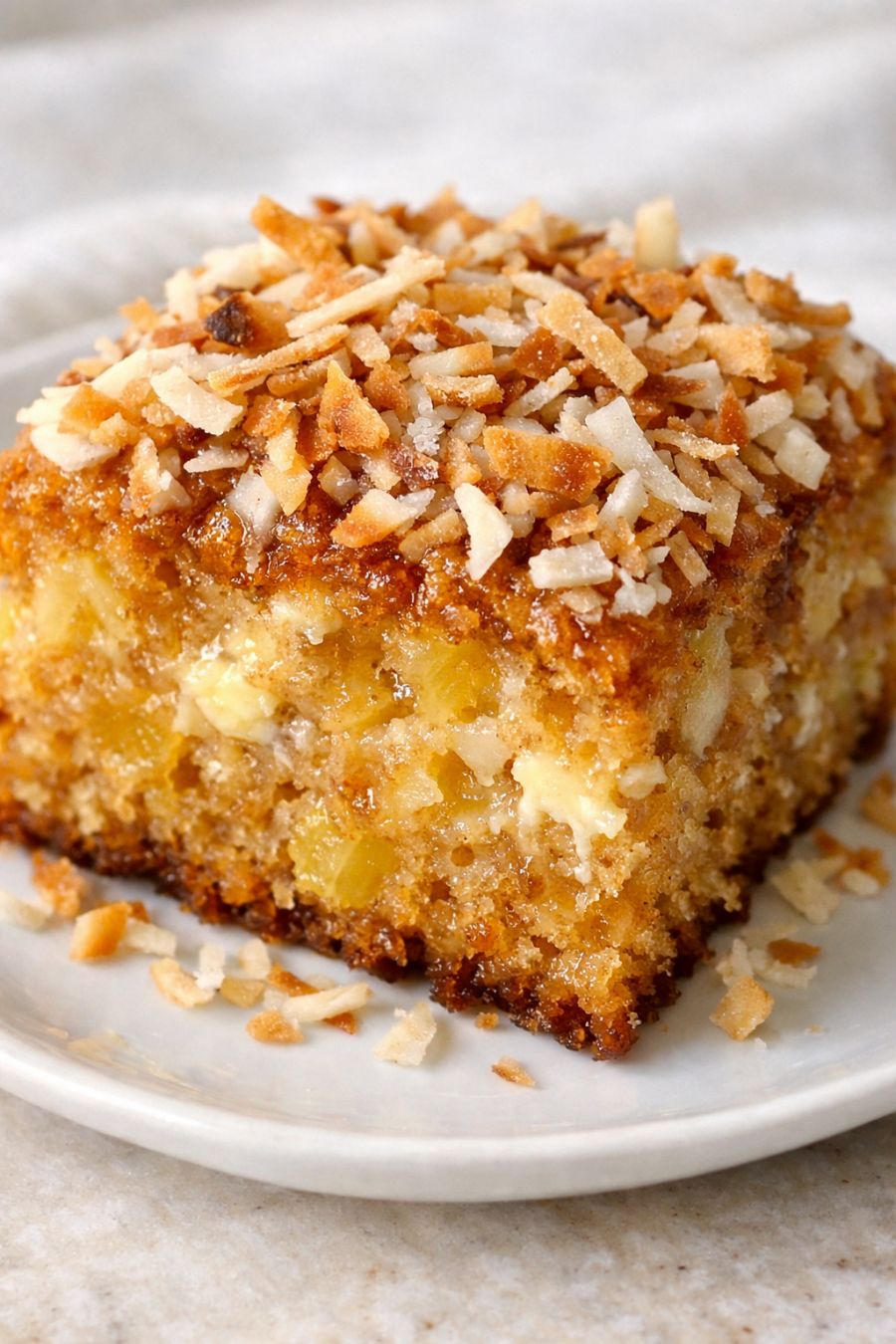 Serve this tropical cake slightly warm with a scoop of vanilla ice cream or a dollop of whipped cream to play up the pineapple’s sweetness. A sprinkle of toasted coconut or chopped toasted pecans on top adds a little crunch if your crew likes texture. For a lighter option, pair small squares with fresh fruit like berries or sliced bananas. It travels well in the pan, so it’s also a great dessert to bring to church potlucks, school events, or backyard cookouts—just slice into small squares and let everyone help themselves.