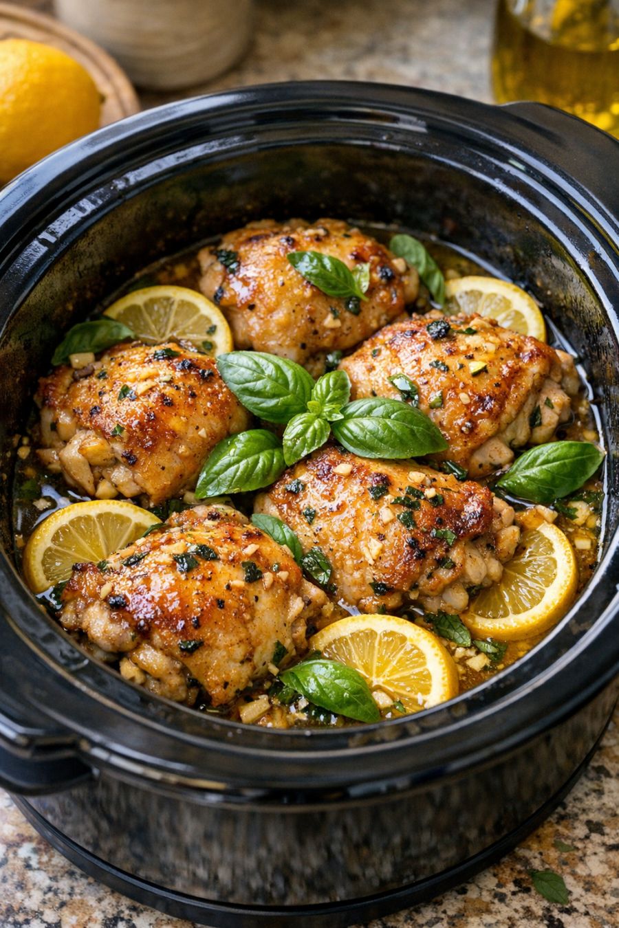 This slow cooker Meyer lemon basil chicken is the kind of bright, simple springtime supper that feels special without asking much of you. The whole idea is built around one fragrant mixture: Meyer lemon juice, fresh basil, plenty of garlic, olive oil, and chicken stock. You just ladle that sunshine-scented liquid over raw bone-in chicken thighs in the slow cooker, snap on the lid, and let time do the work. It reminds me of the first warm days after a long Midwestern winter, when you’re still leaning on your trusty slow cooker but craving lighter, fresher flavors. The meat turns tender, the broth is good enough to sip from a spoon, and it’s the kind of meal that quietly earns a place in the regular rotation.