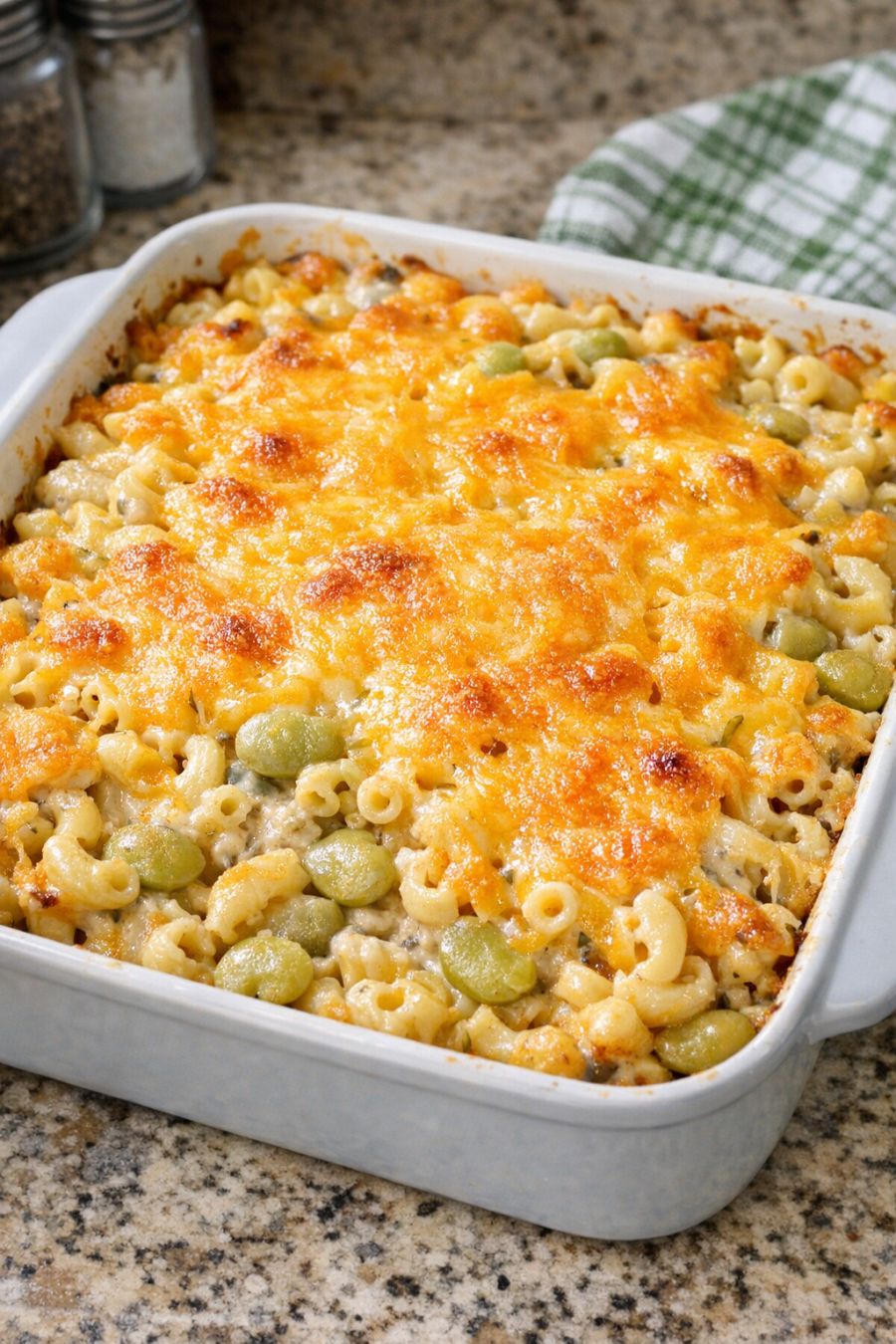 Let the casserole rest for about 5–10 minutes before serving so it can set up a bit and is easier to scoop. Serve warm and enjoy the creamy lima beans and tender macaroni together.