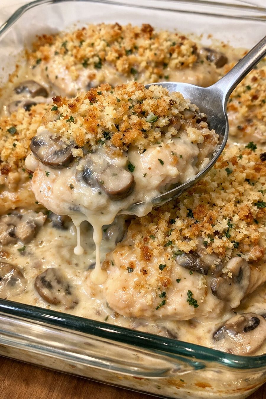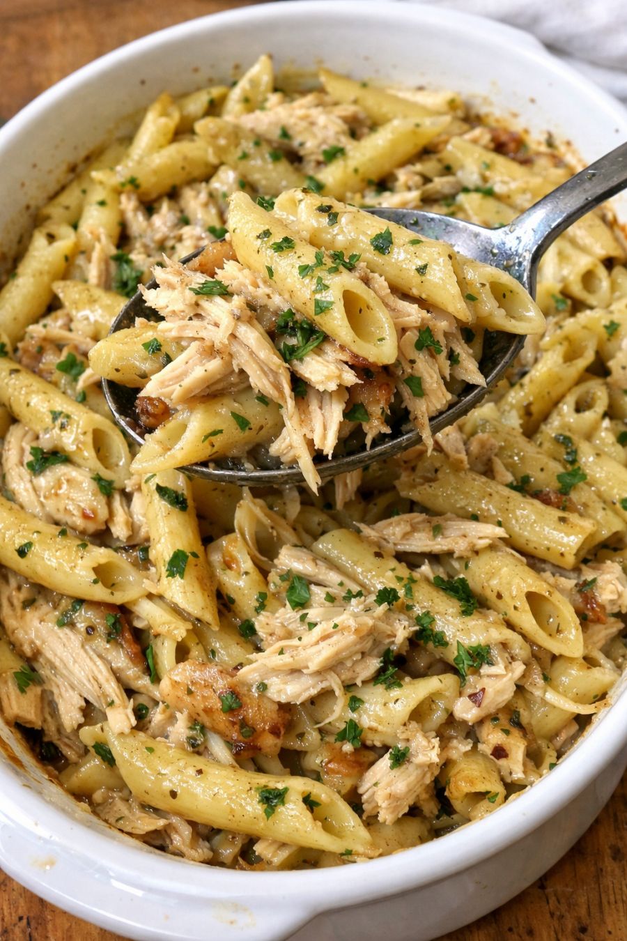 Spoon tub sour cream and chive dip and these 2 ingredients over uncooked egg noodles into a baking pan for a cozy dish your family will want every single week