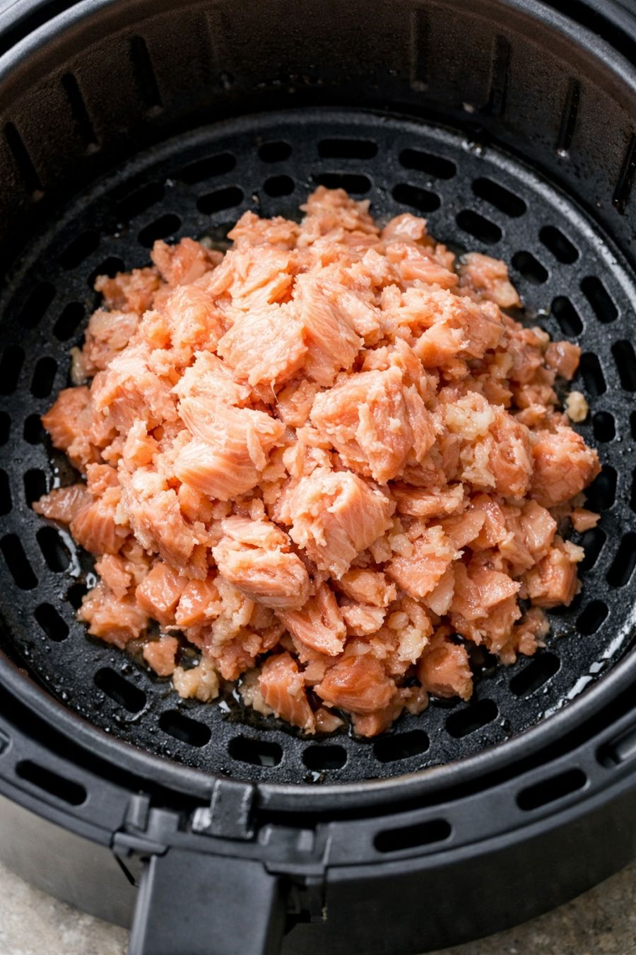 Put a lump of canned pink salmon in the air fryer basket and 5 more basics to create a meal so tasty your friends will demand you make it again.